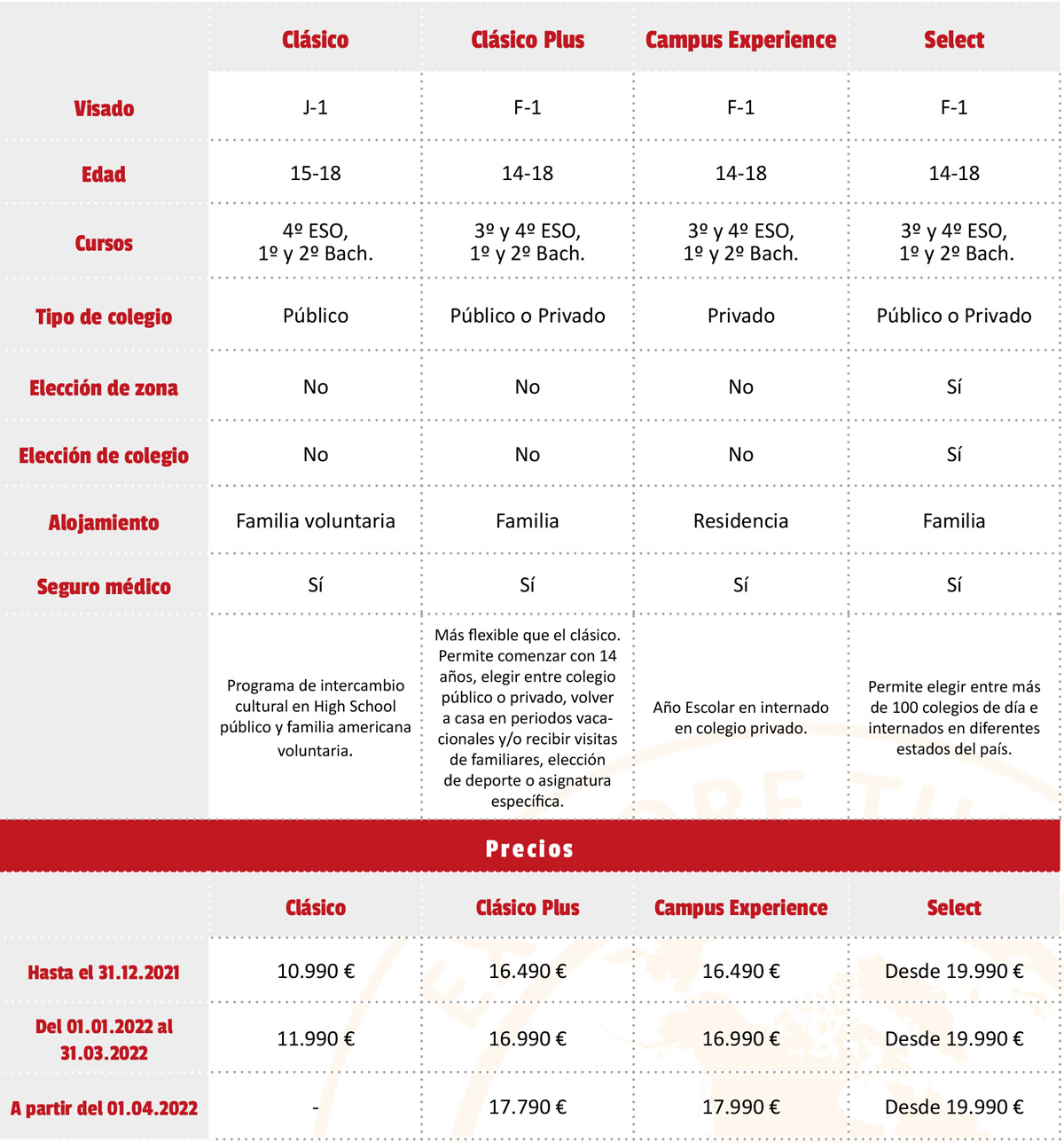 Precios de los programas de año escolar en EEUU